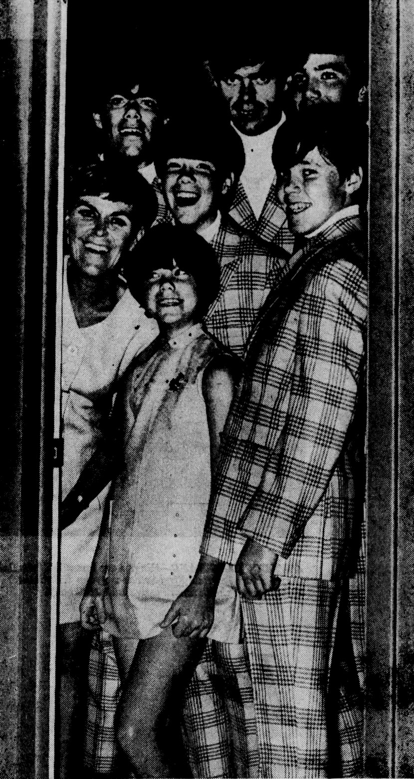 A BOUYANT FAMILY - The Cowsills, a singing family, strike this happy portrait just before their Barnum Festival performance in the tent.