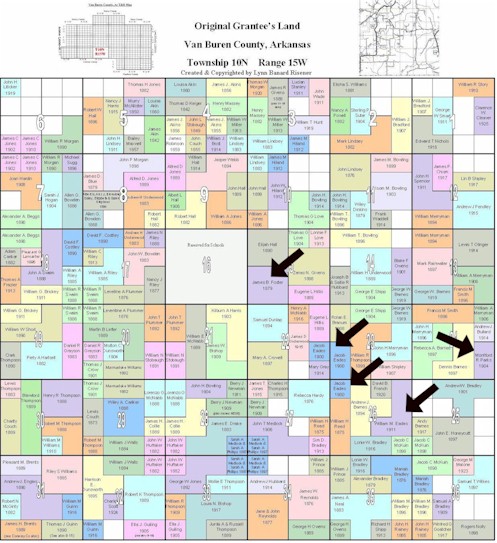 Arrows point to land owned by Montford R. Parks, Willam M. Eades, James B. Foster and Jacob Eades