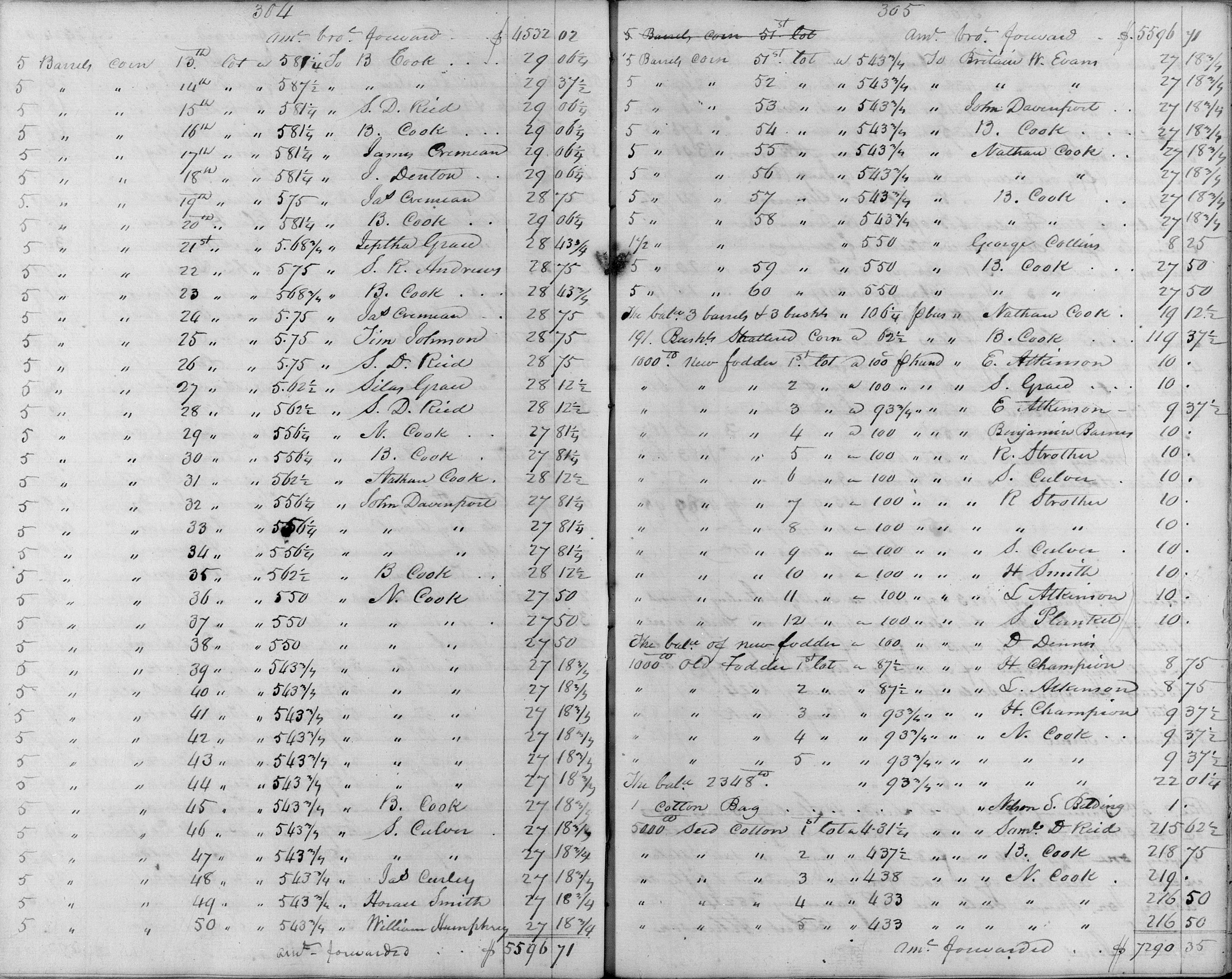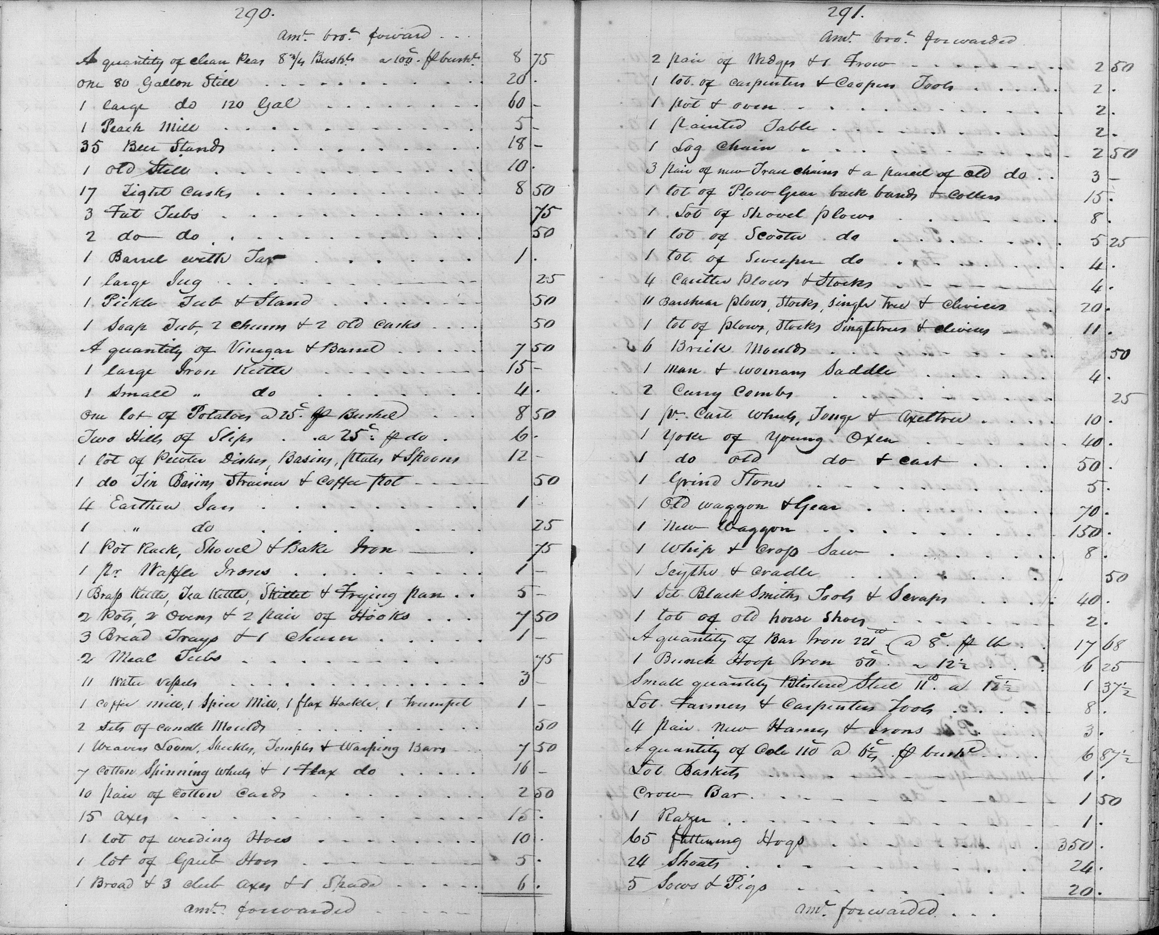 Item 5th I give and bequeath unto my son Elbert Atkinson ten negroes, viz, Willis Daniel Isaac men, Esther a woman and her six children Amy, Fanny, Nelly, Arthur, Henry and Warren. Also the tract of land on which I now live containing by estimation one thousand and twenty seven acres of land more or less to him the said Elbert Atkinson to have and to hold forever in fee simple. Also his choice of one of my horses one hundred barrels of corn, two feather beds and furniture to him and his heirs and assigns forever.