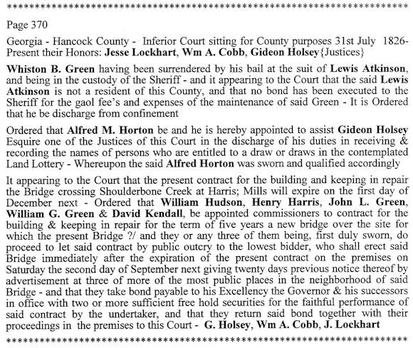 Georgia Clarks Office of Hancock Court of Ordinary 19th September 1821