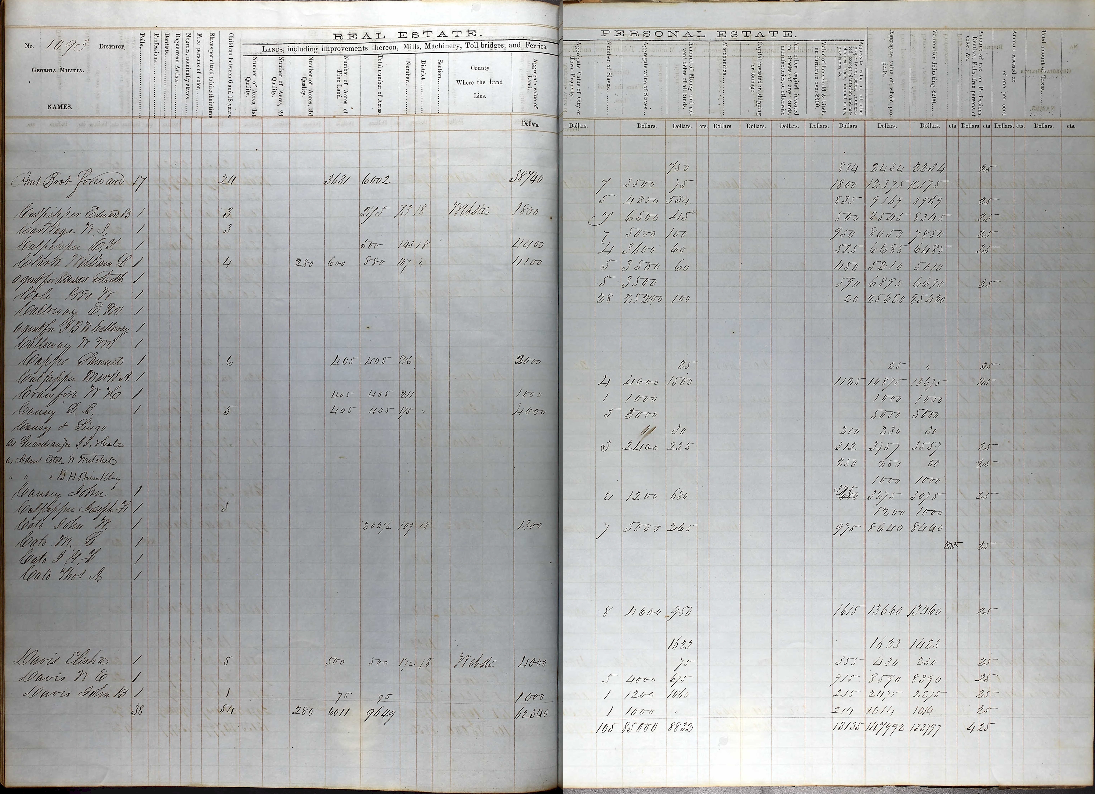 Georgia - Property Tax Digest Webster County - 1858