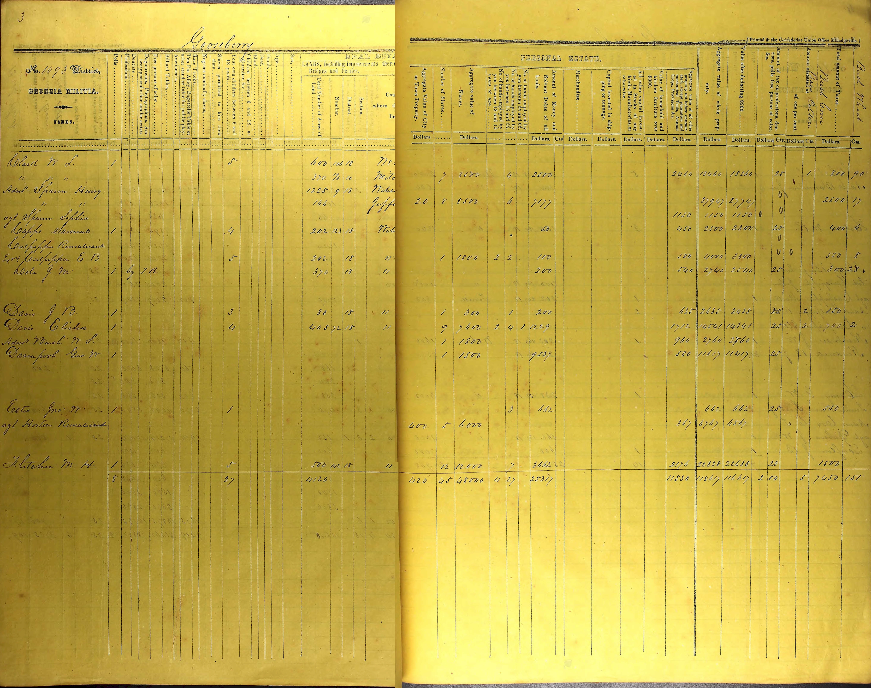 Georgia - Property Tax Digest Gooseberry, Webster County - 1864
