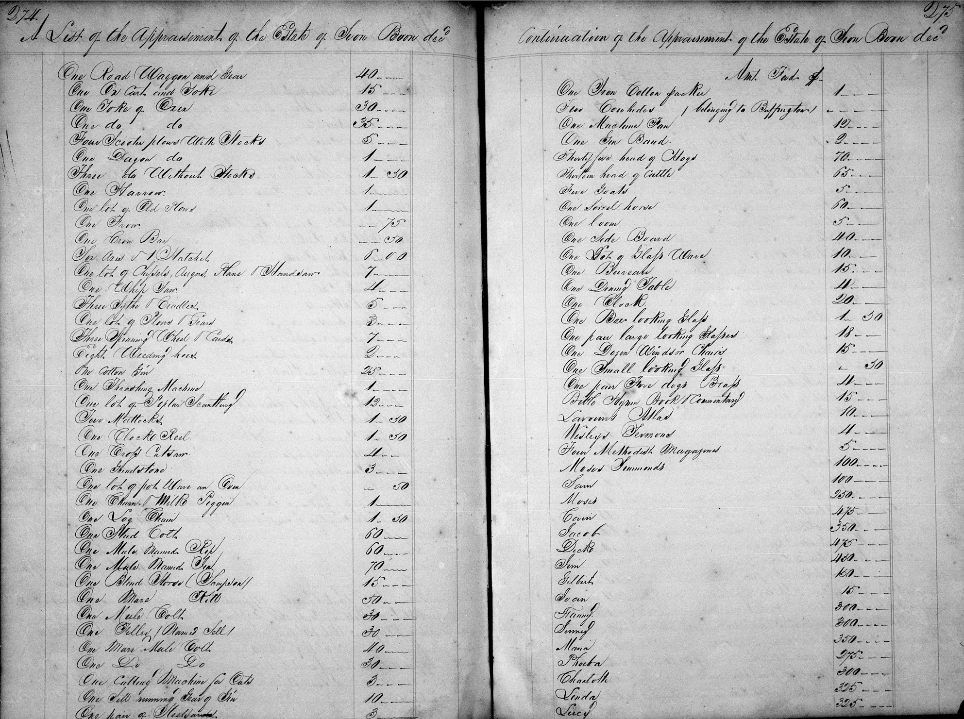 An inventory and appraisement of the Estate of Gilley Boon Deceased