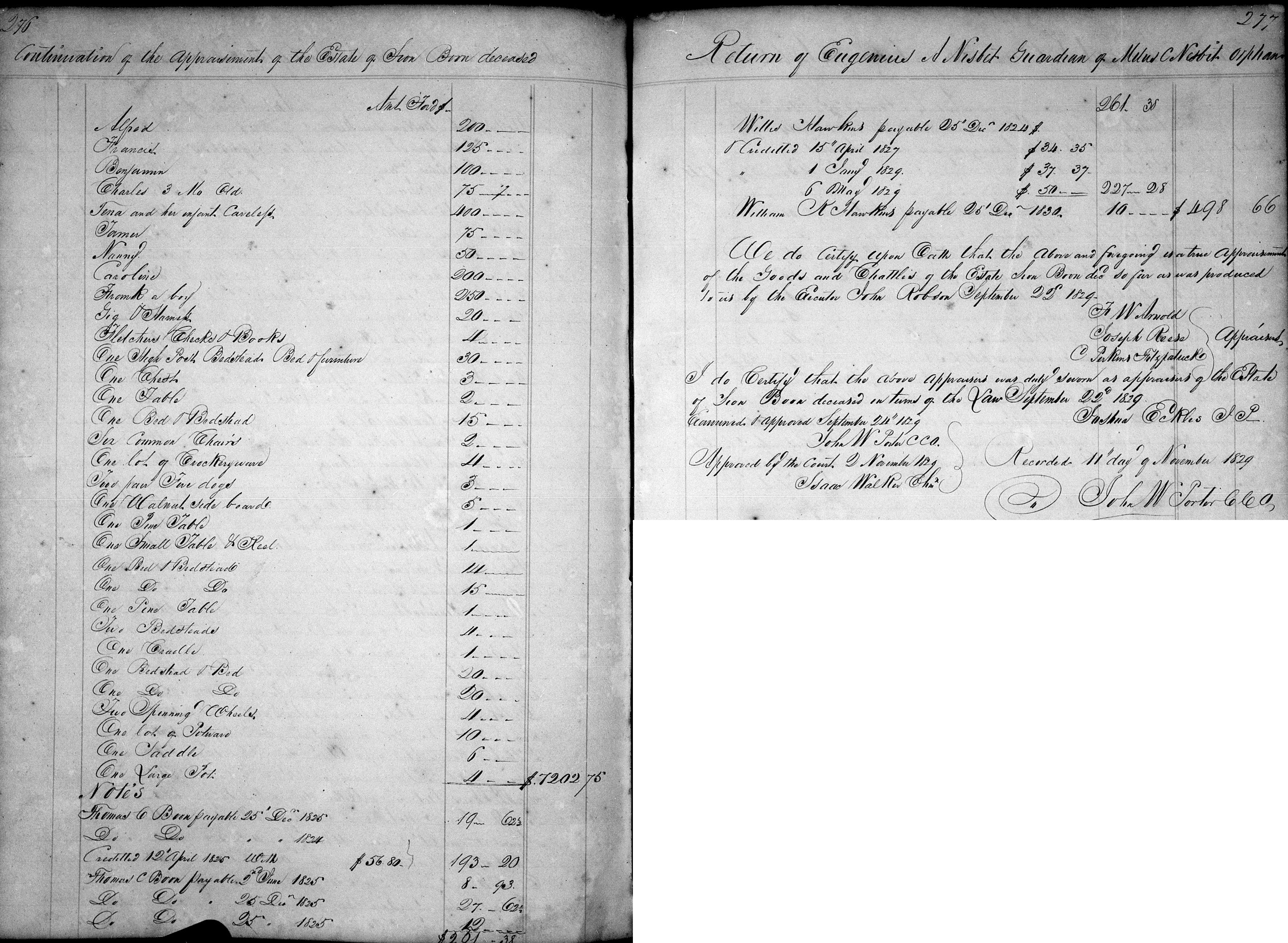 Sion and Gilly Boon Probate/Inventory Records Probate Administration and Guardian and Sales Vol H 1828-1834