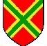 The Shield is: A red background with a green cross over which is a gold cross The Crest is: A saracen's head The motto is: Victrix Fortuna Sapientia (Victorious Fortune Wisdom)