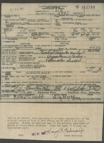 Henry and Lillian Hixson's Death Records