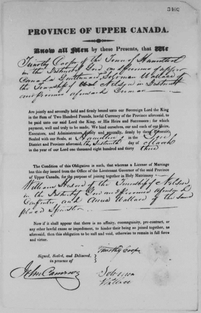 William Hixson and Anna Wallace Marriage License