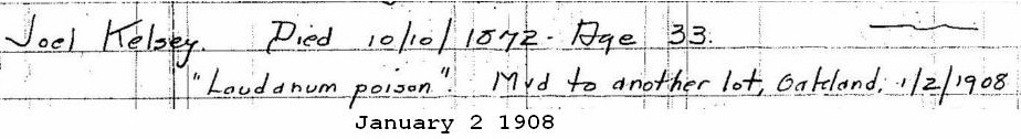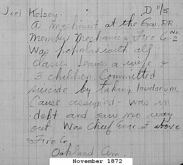 Several pioneer and useful citizens of the Atlanta area died during 1867. . . . Joel Kelsey, Sr., age 73, native of New Milford, Connecticut, and one of the original settlers of Atlanta, died October 22nd while visiting a daughter in Jefferson, Texas. He was the first bookkeeper for the Georgia Railroad in Atlanta and was also one of the three original ruling elders of the First Presbyterian Church in 1848.