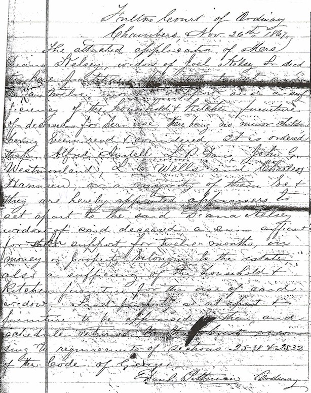 support for Mrs. Diana Kelsey widow of Joel Kelsey Sen decd do herby set apart all the household & Kitchen furniture