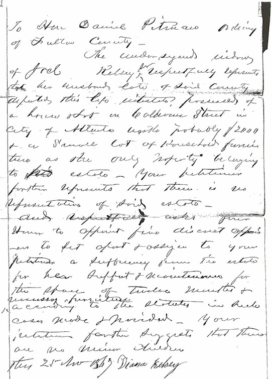 The undersigned widow of Joel Kelsey Sr respectfully represents that her husband late of said