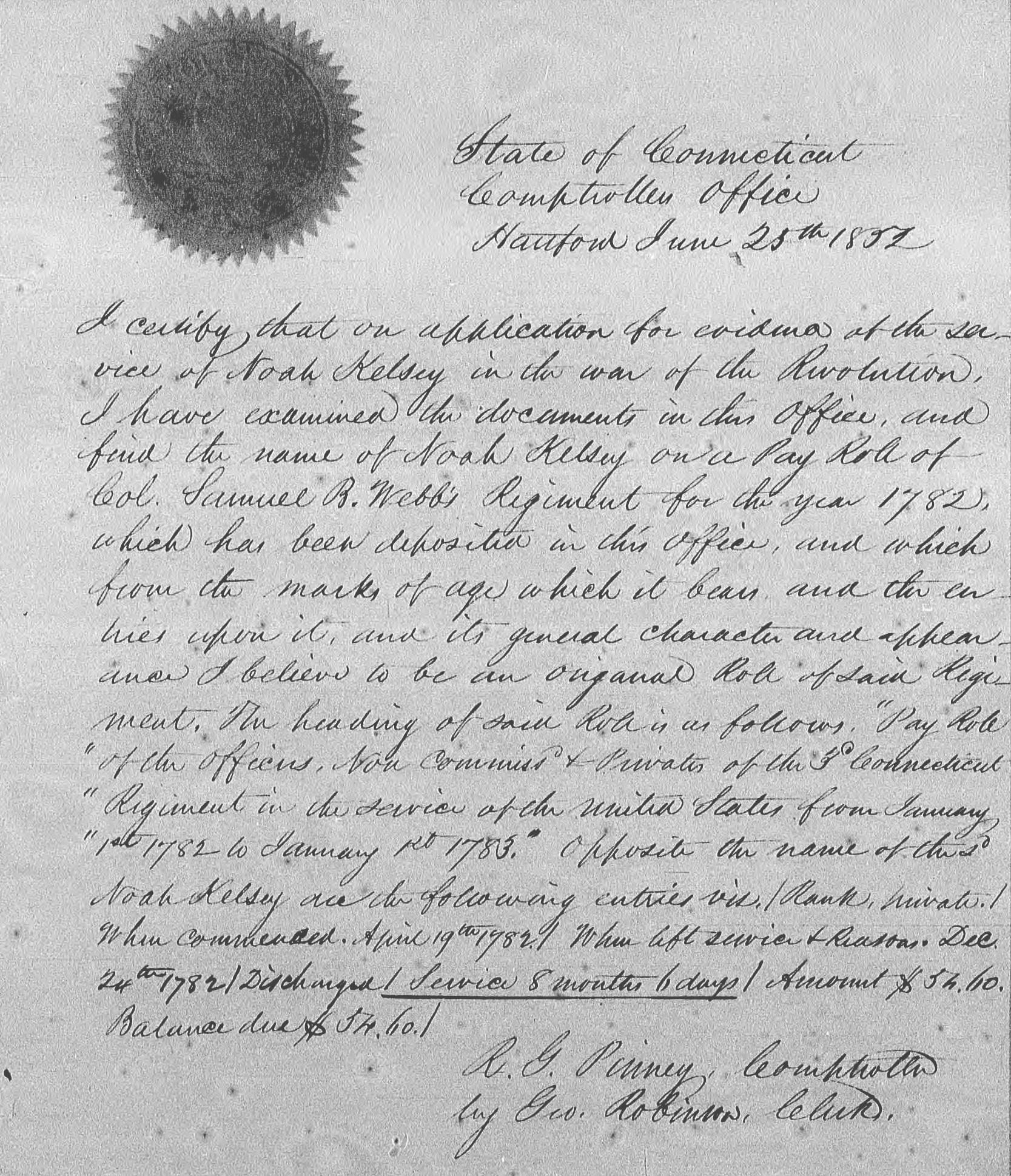 Noah Kelsey Revolutionary War Pension