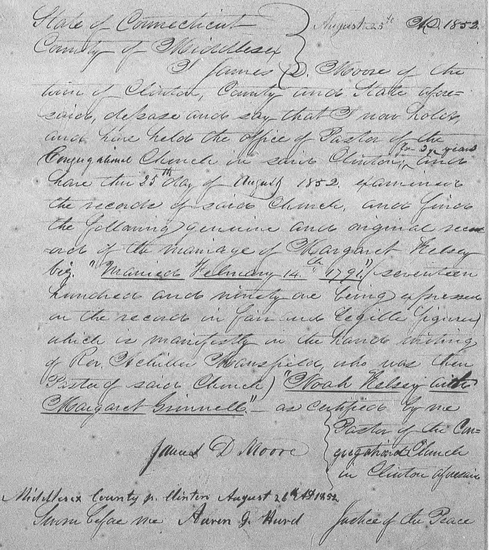 Middlesex County Clinton August 26 AD 1852