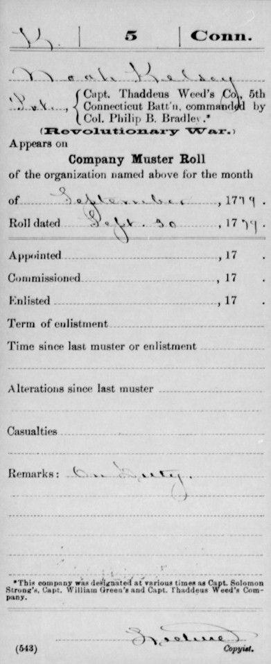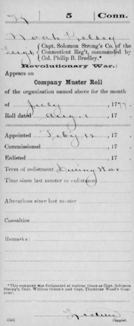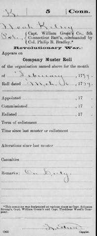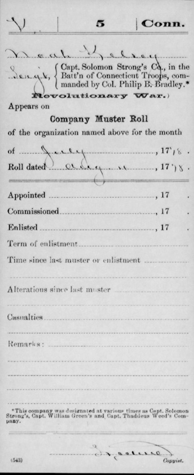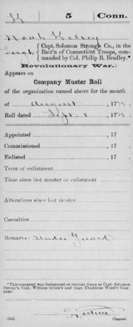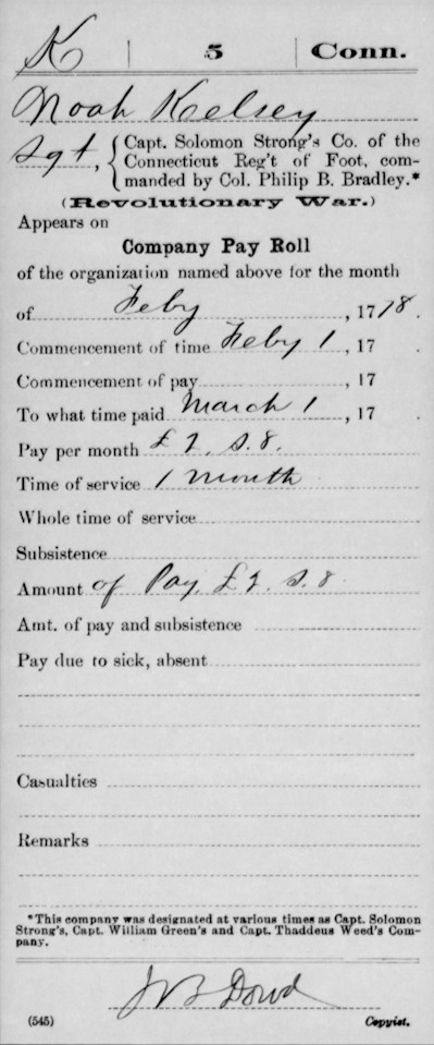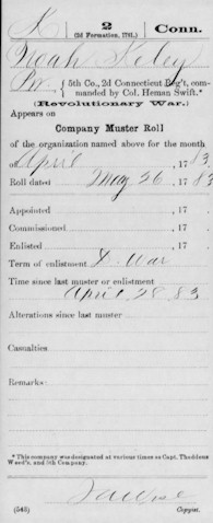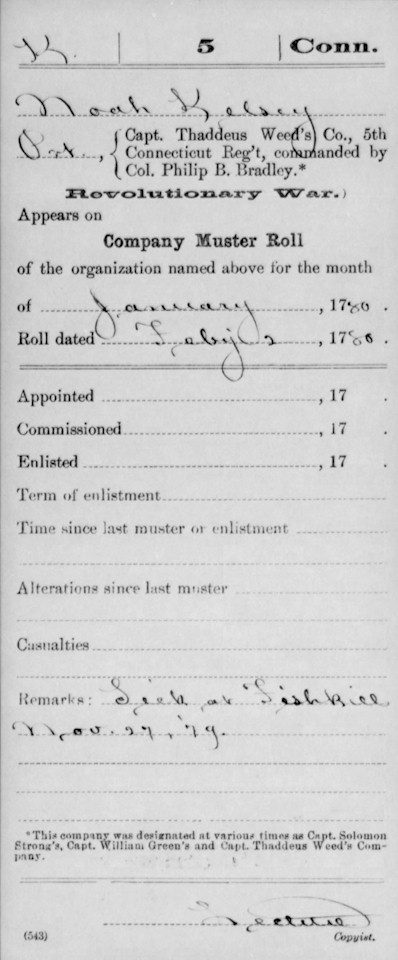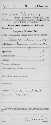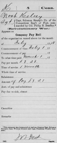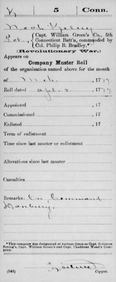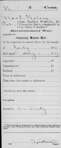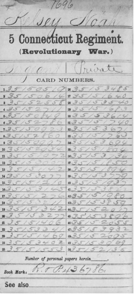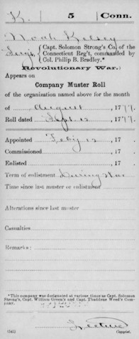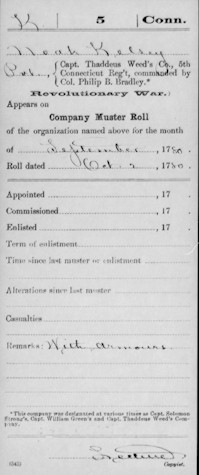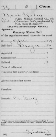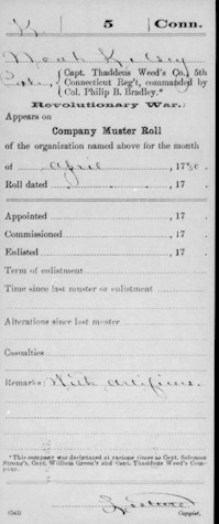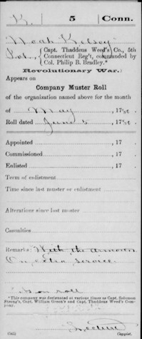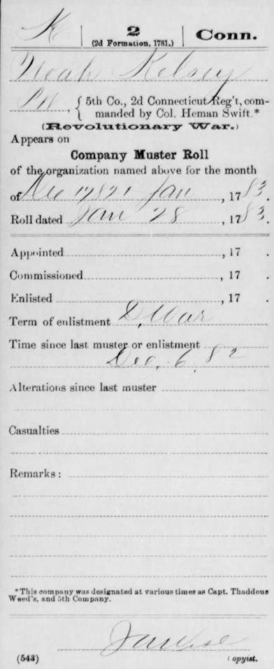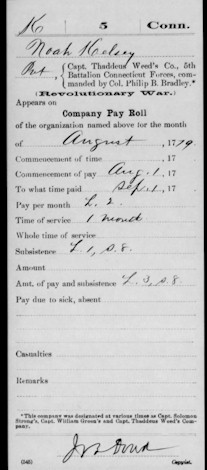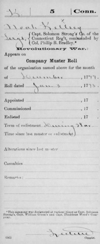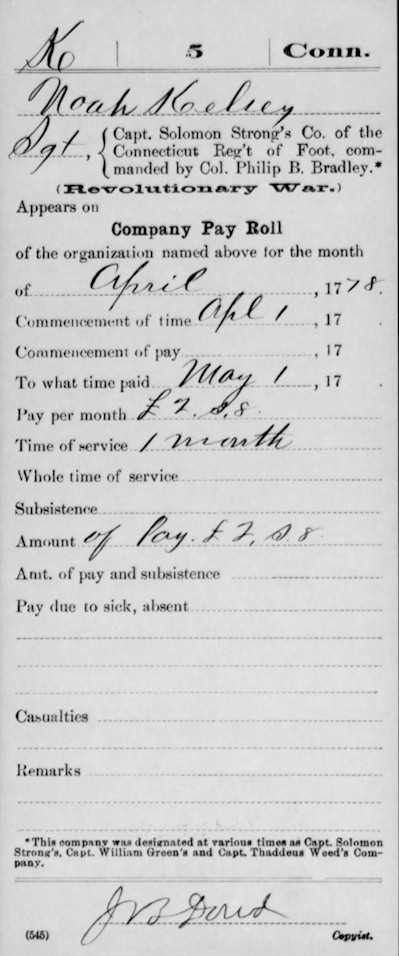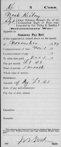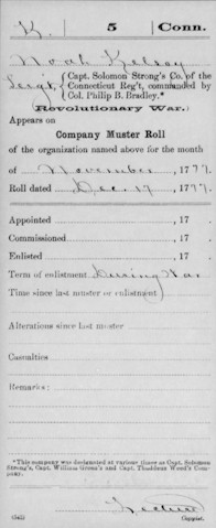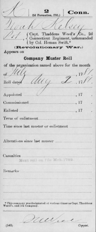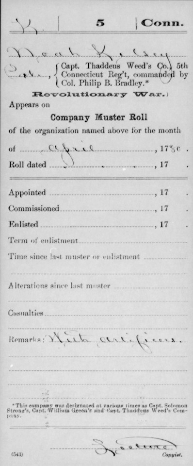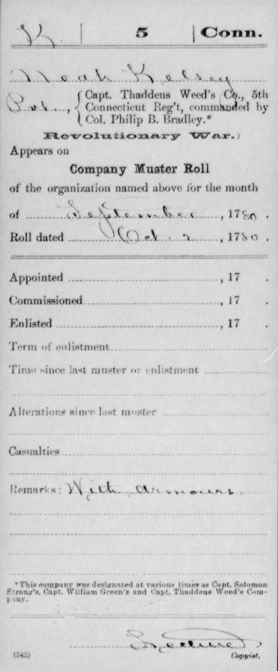 Noah Kelsey Revolutionary War Records Company K of the 5th Connecticut Col. Philip B. Bradley's Regiment
