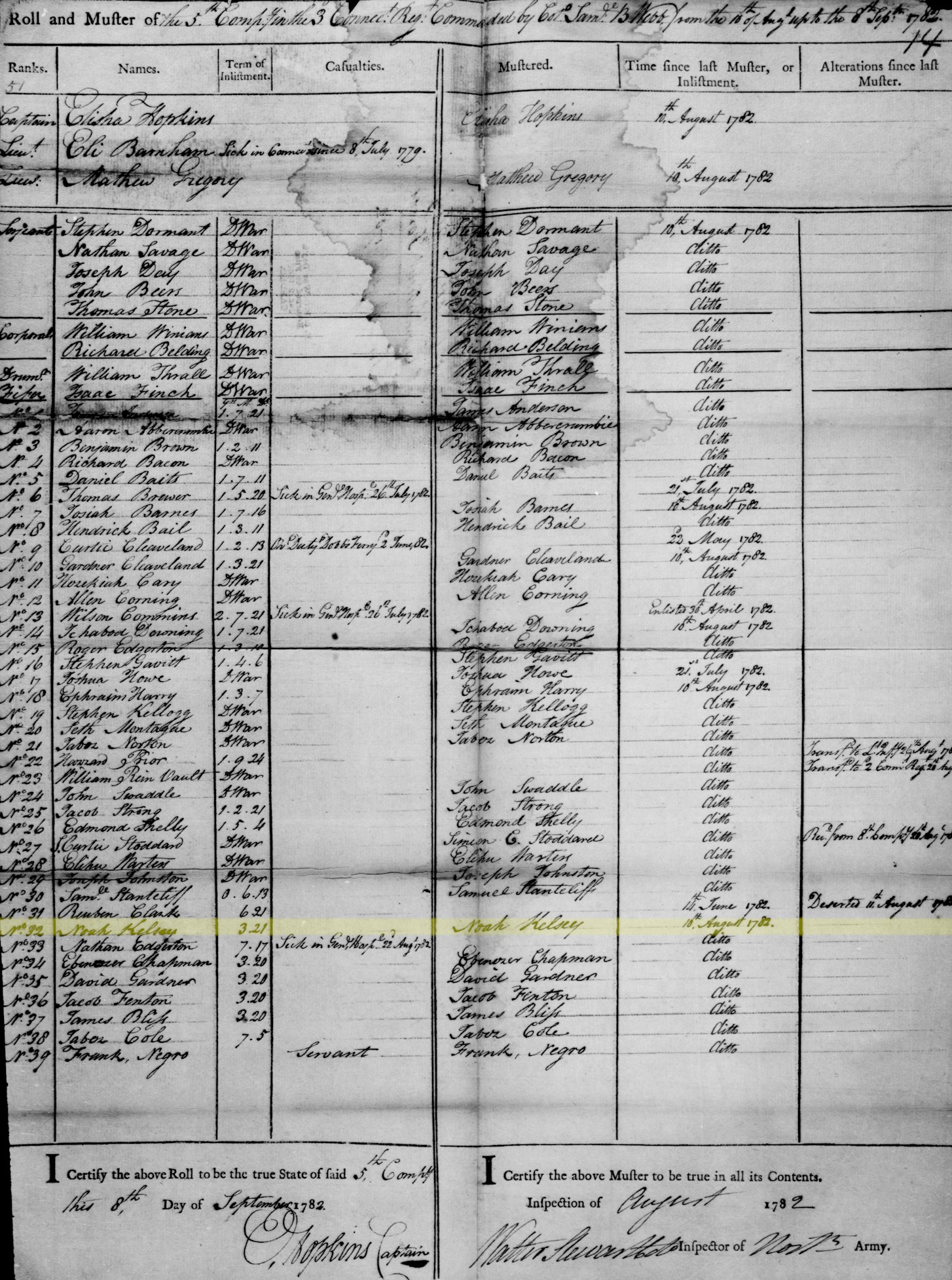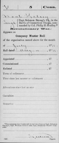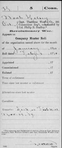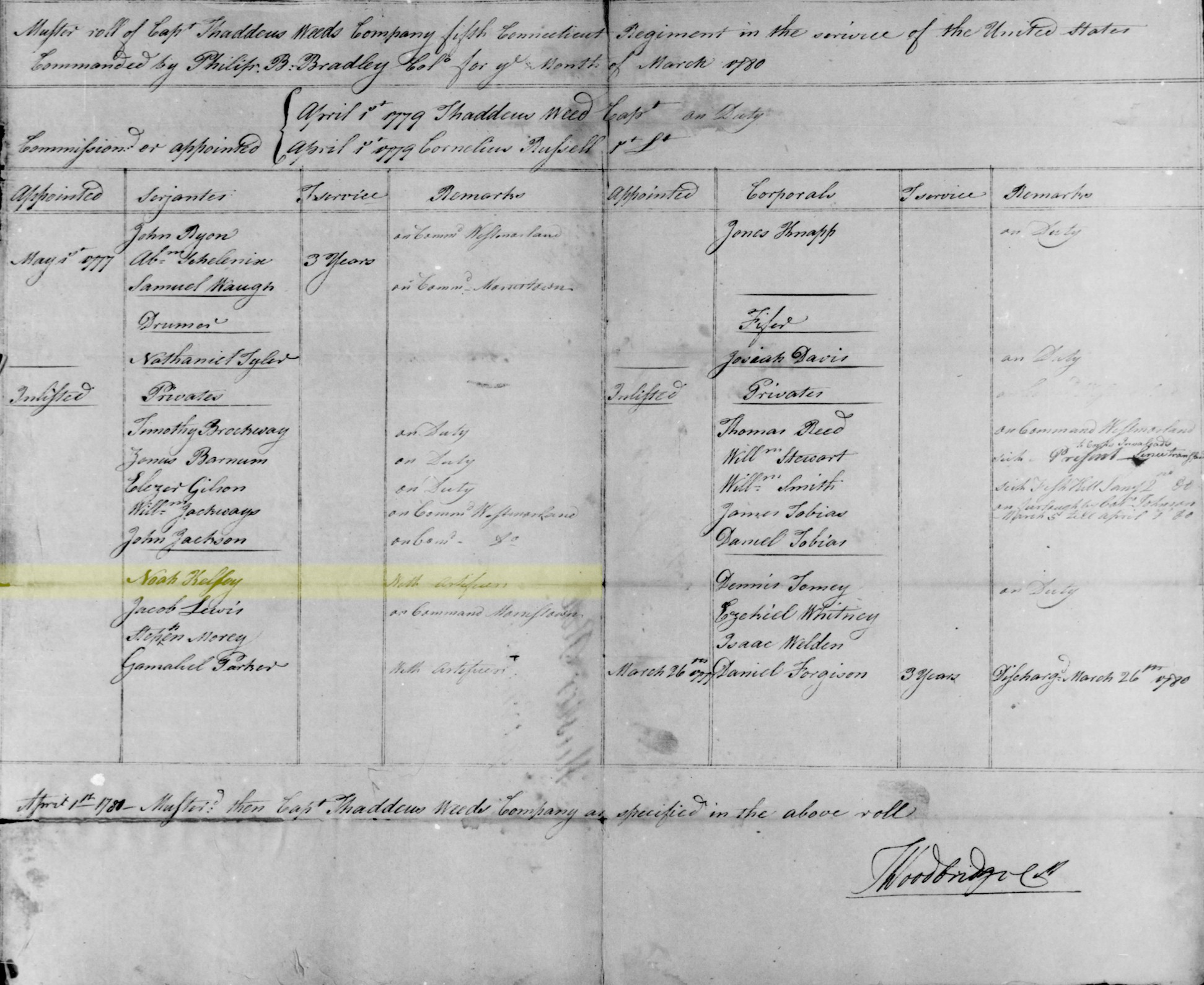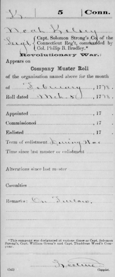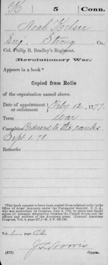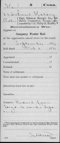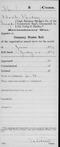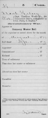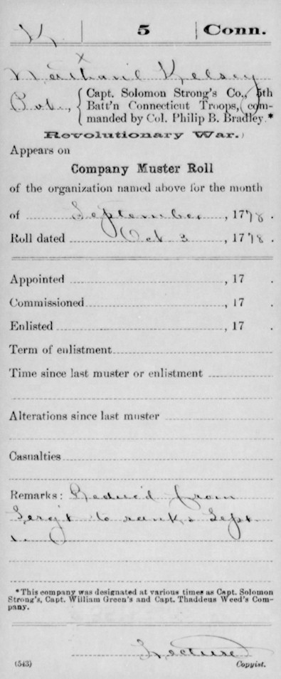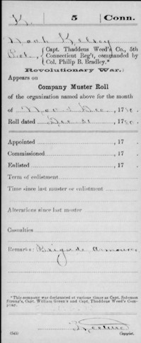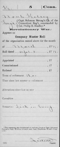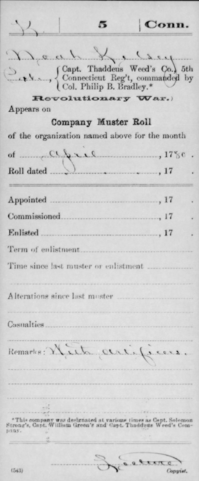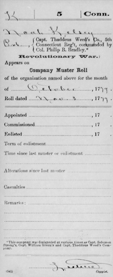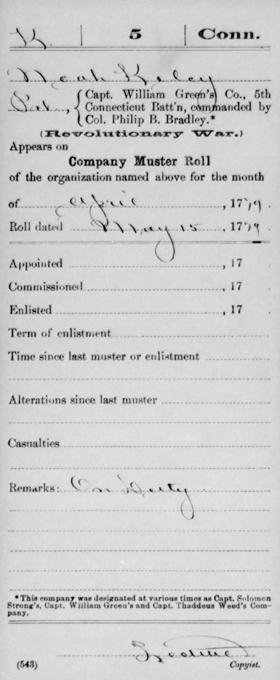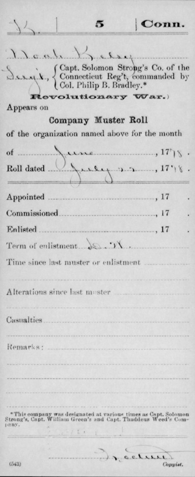 Noah Kelsey Revolutionary War Records Company K of the 5th Connecticut Col. Philip B. Bradley's Regiment