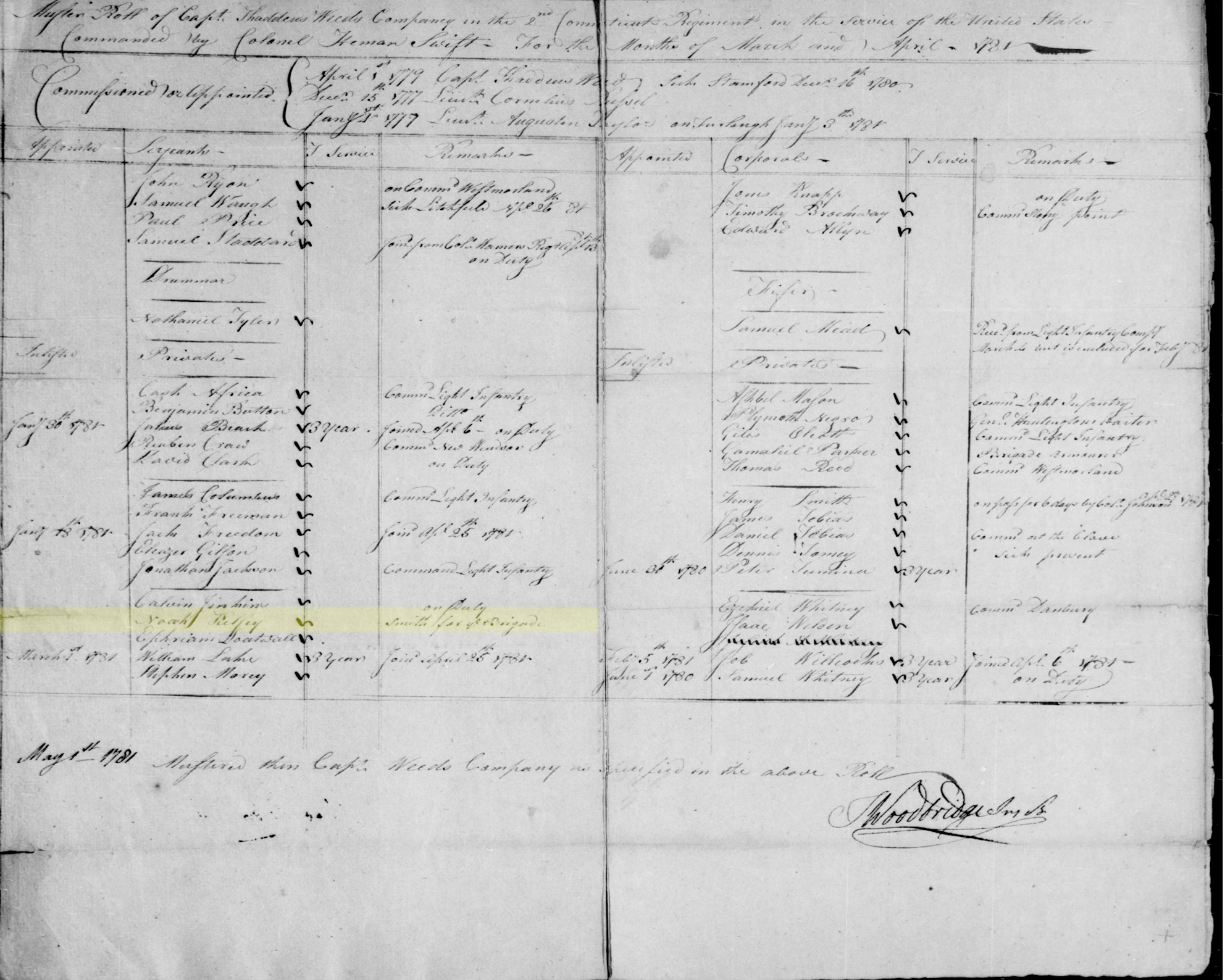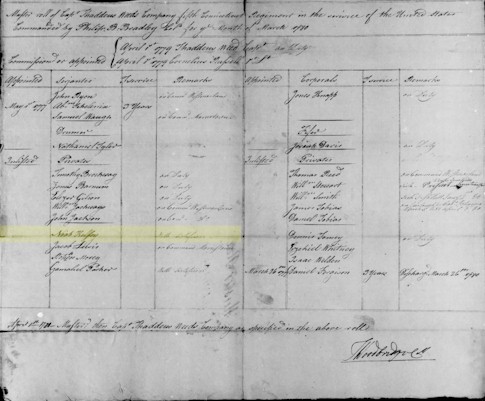 Still private Remarks say "sick Peekskill Nov 27, 1779"