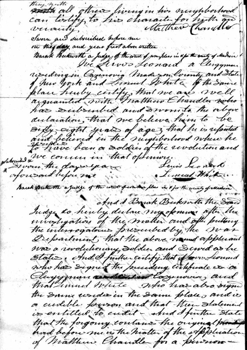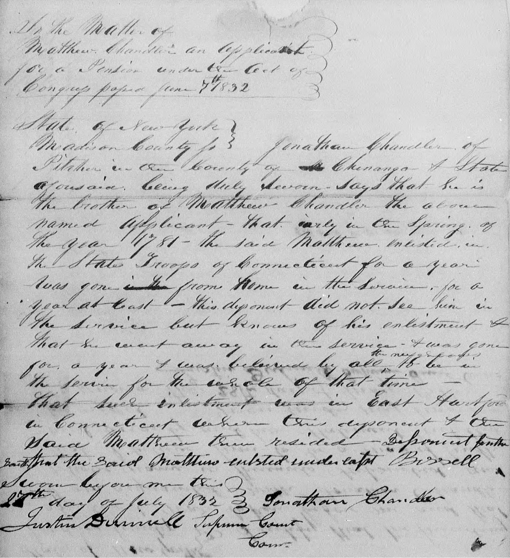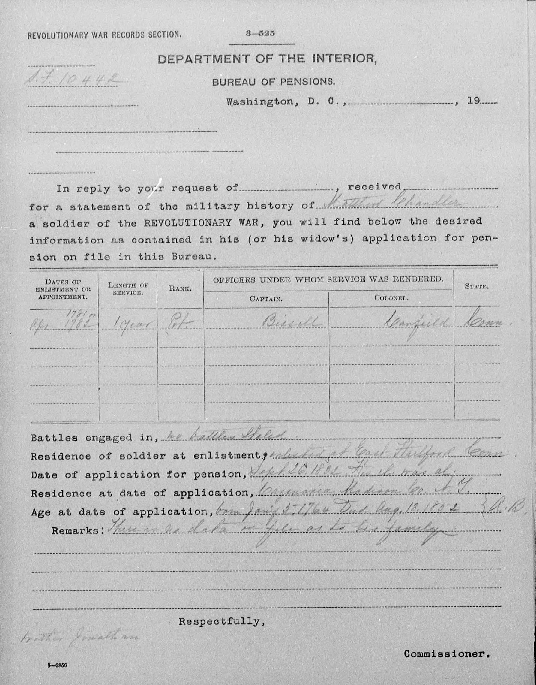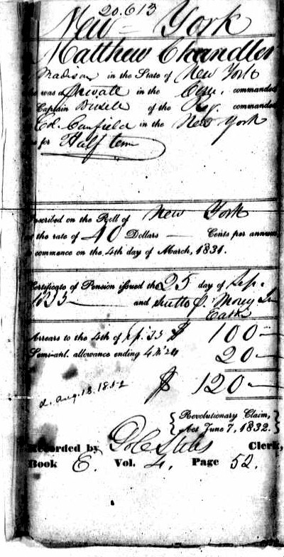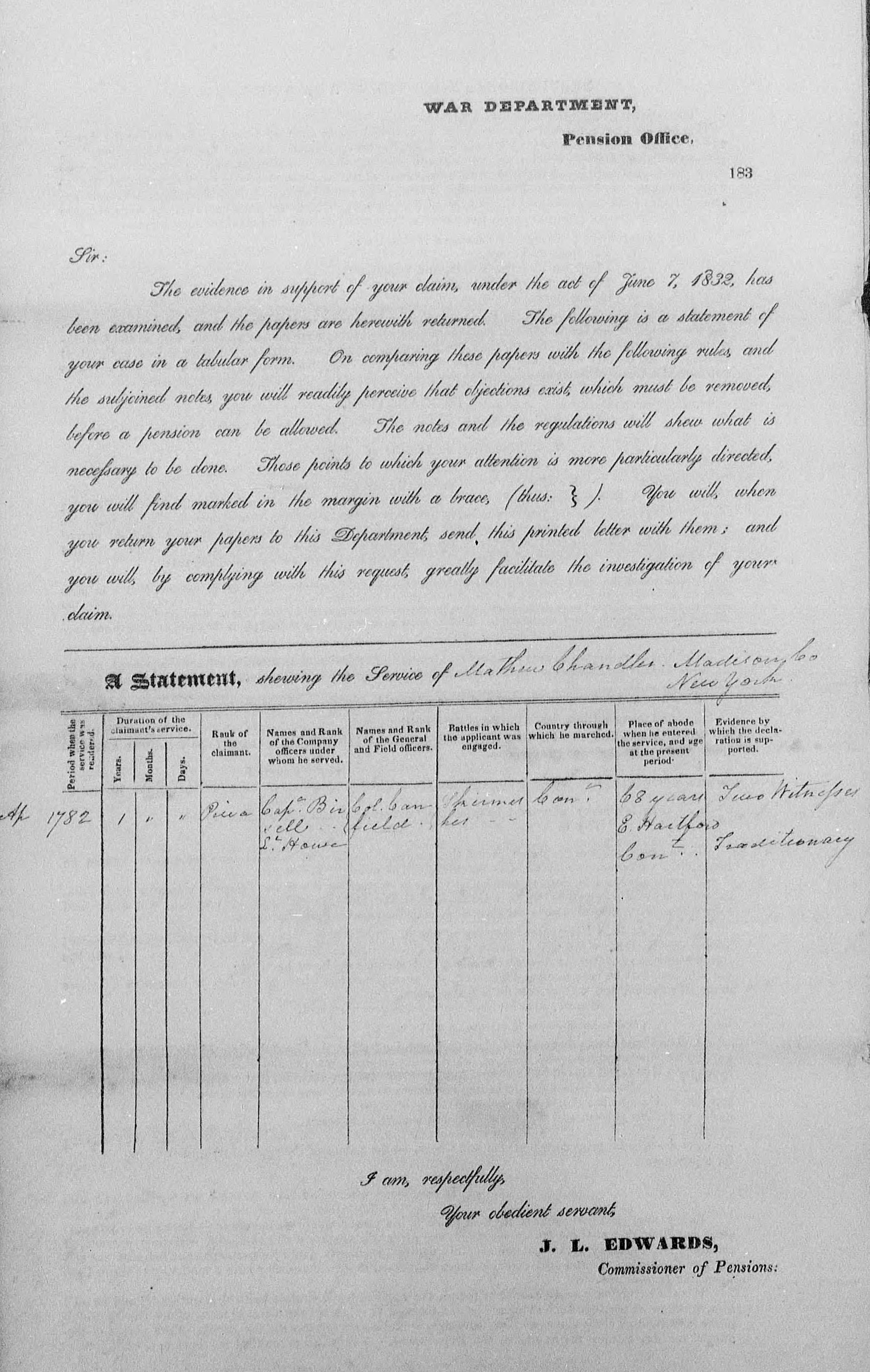 STATEMENT, showing the Service of Mathew Chandler Madison Co. New York