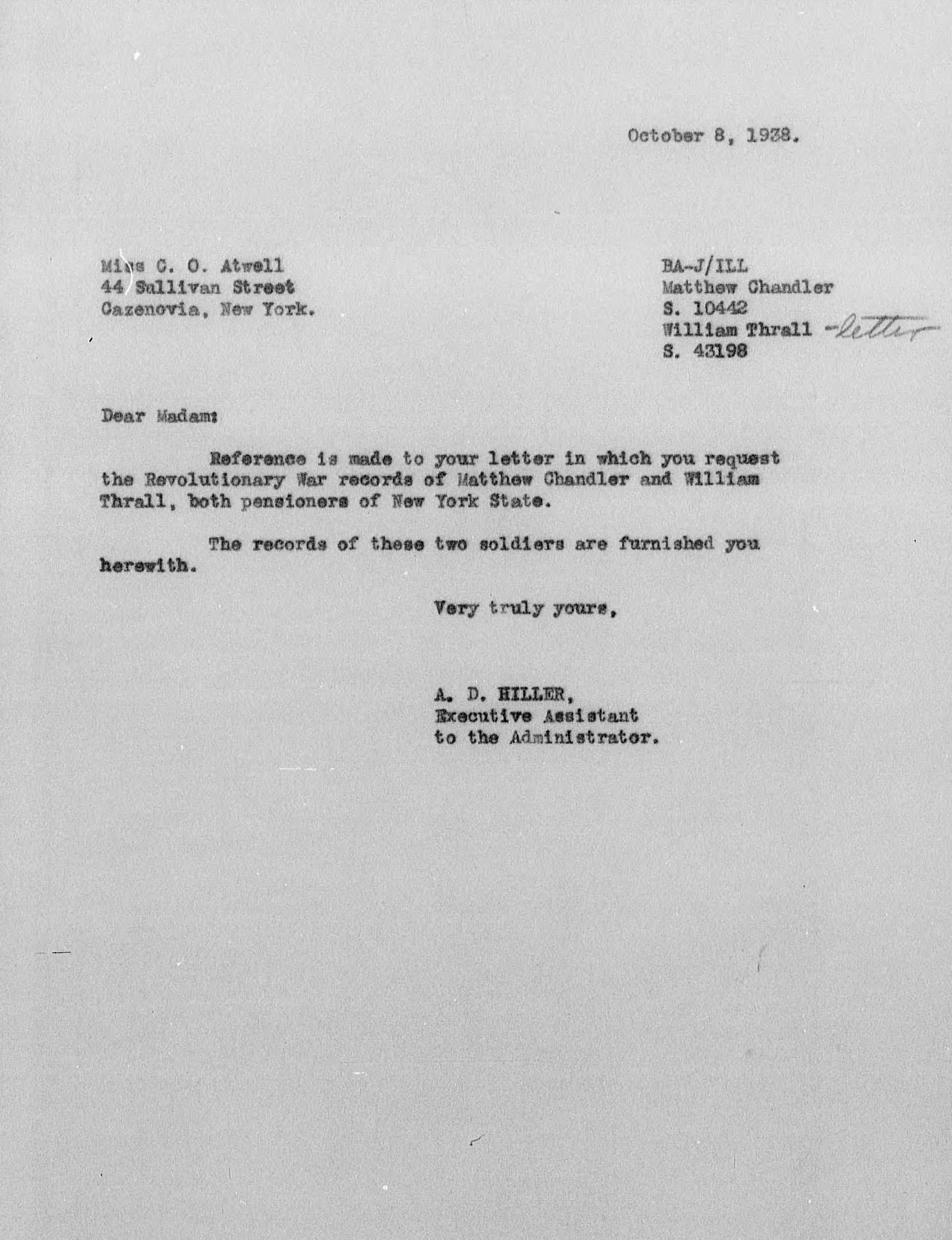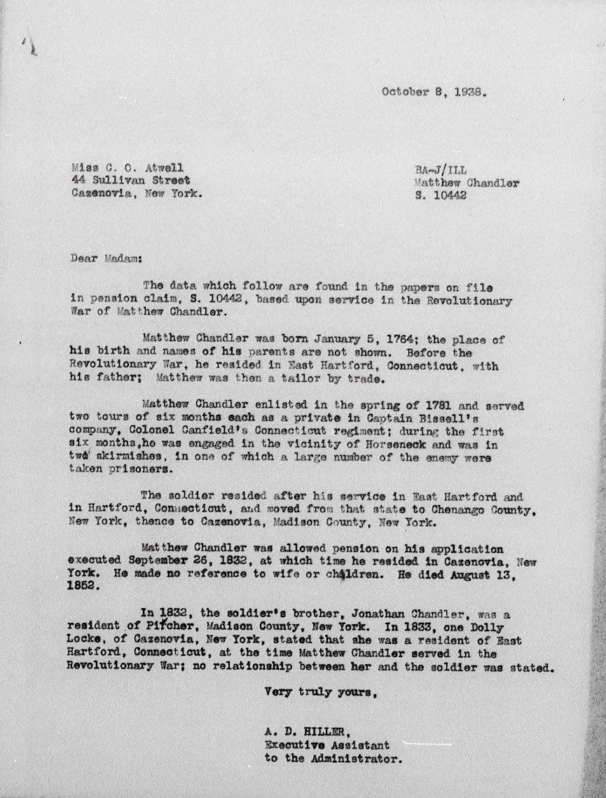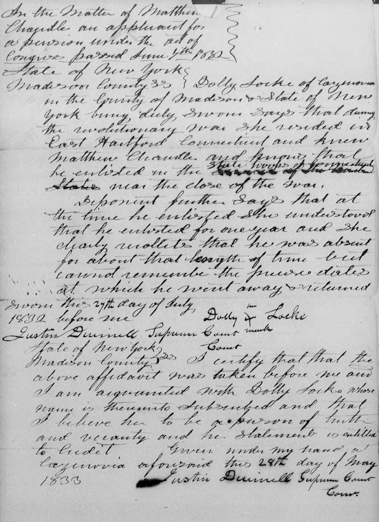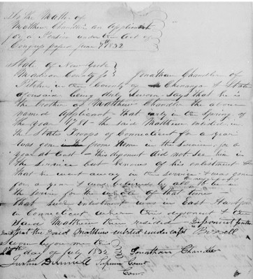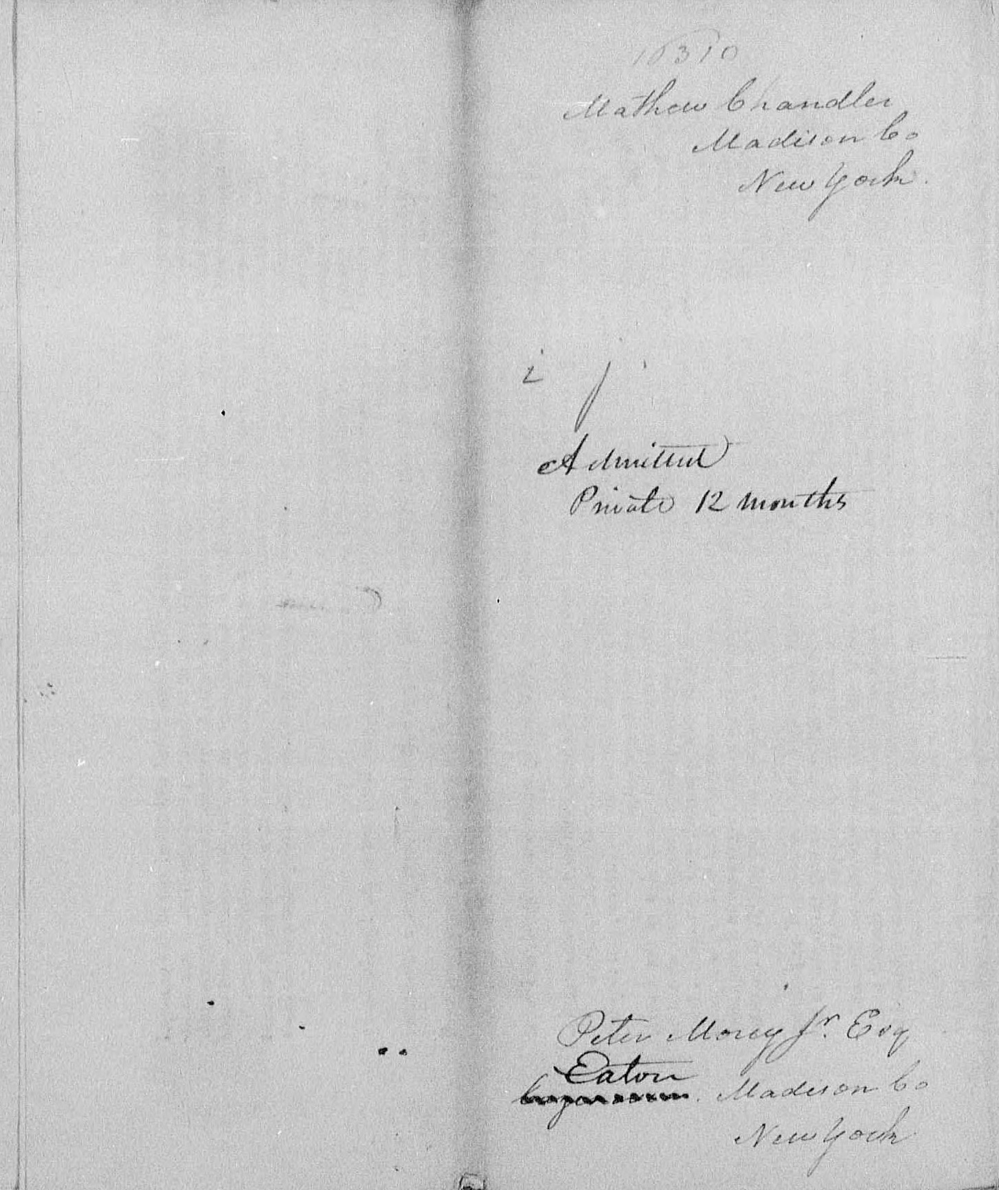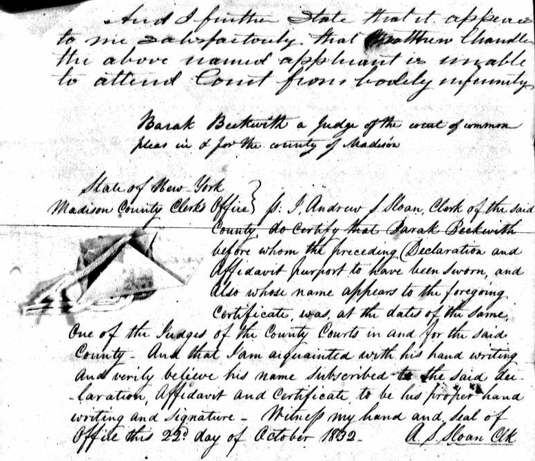 STATEMENT, showing the Service of Mathew Chandler Madison Co. New York