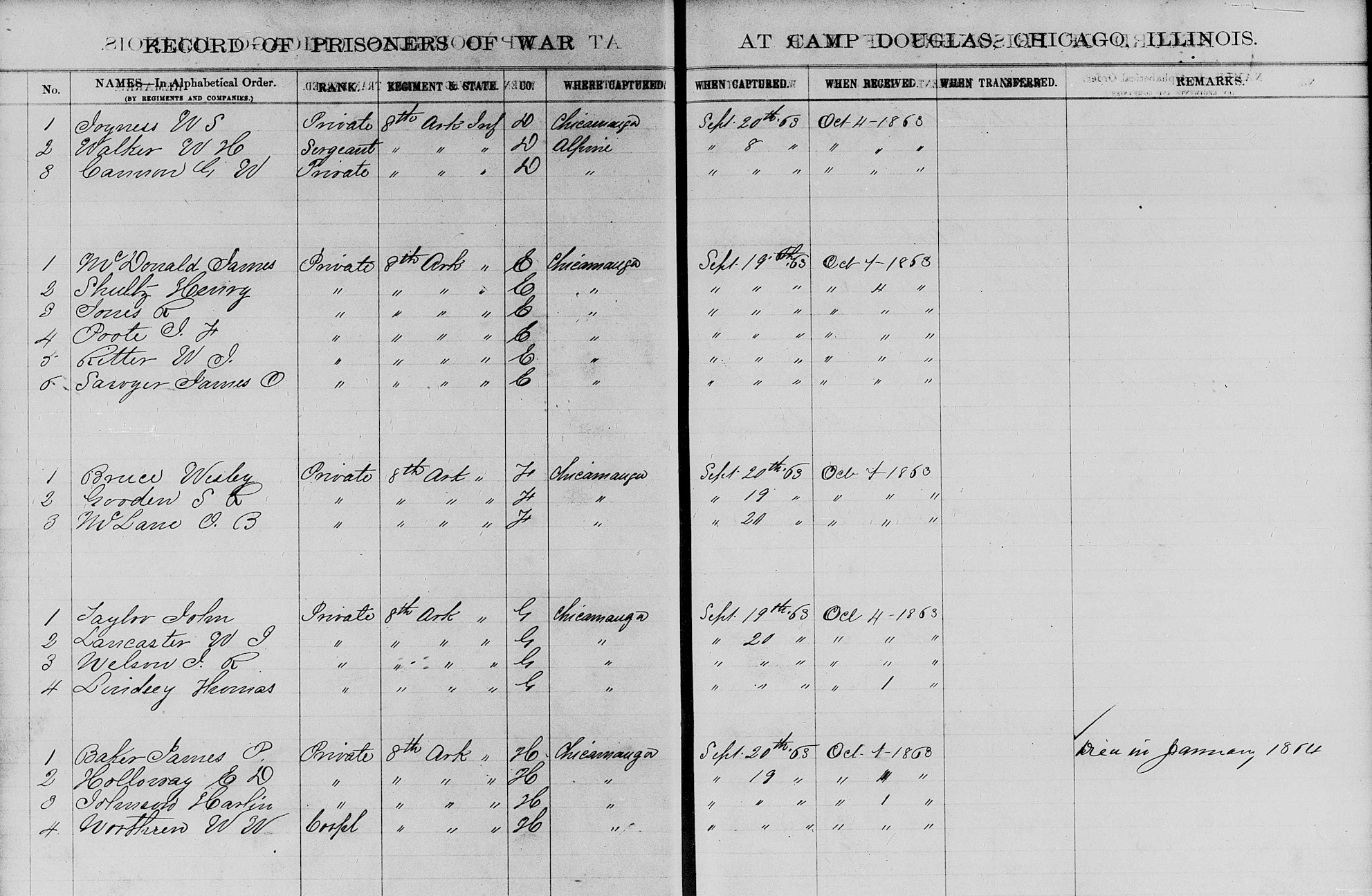 Remarks Missing in action Battle Chickamaunga Sept 20 1863 Supposed to be captured