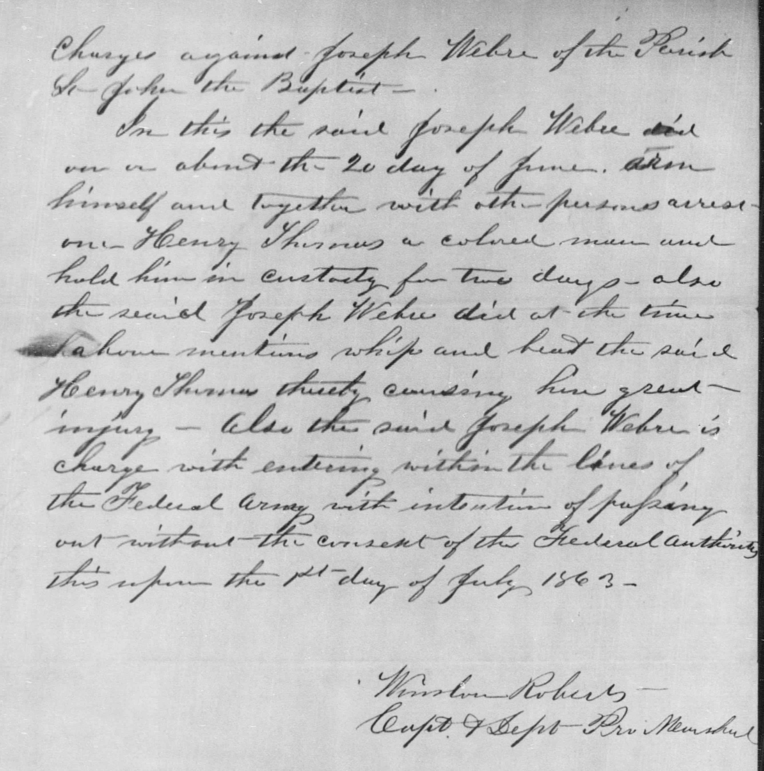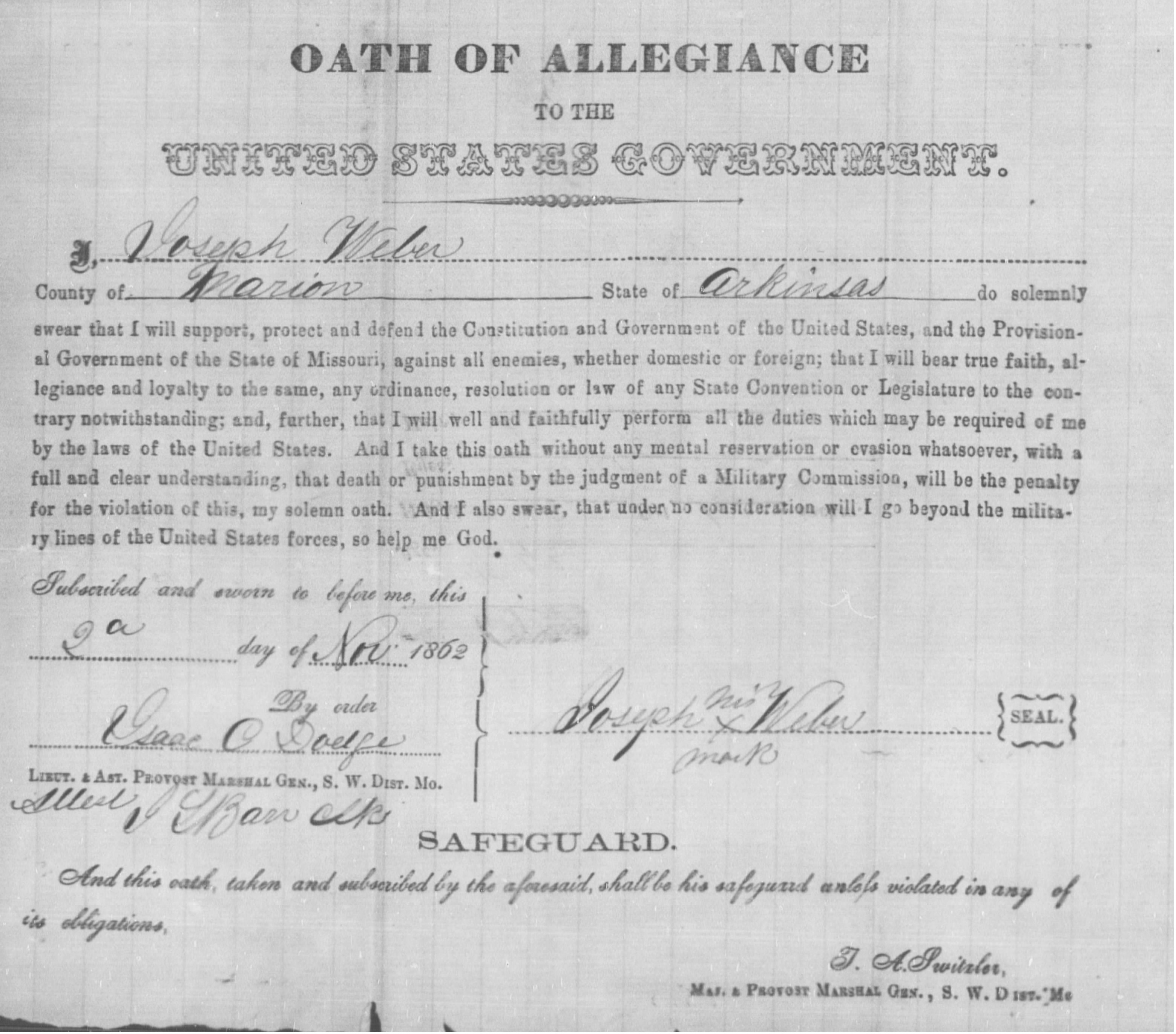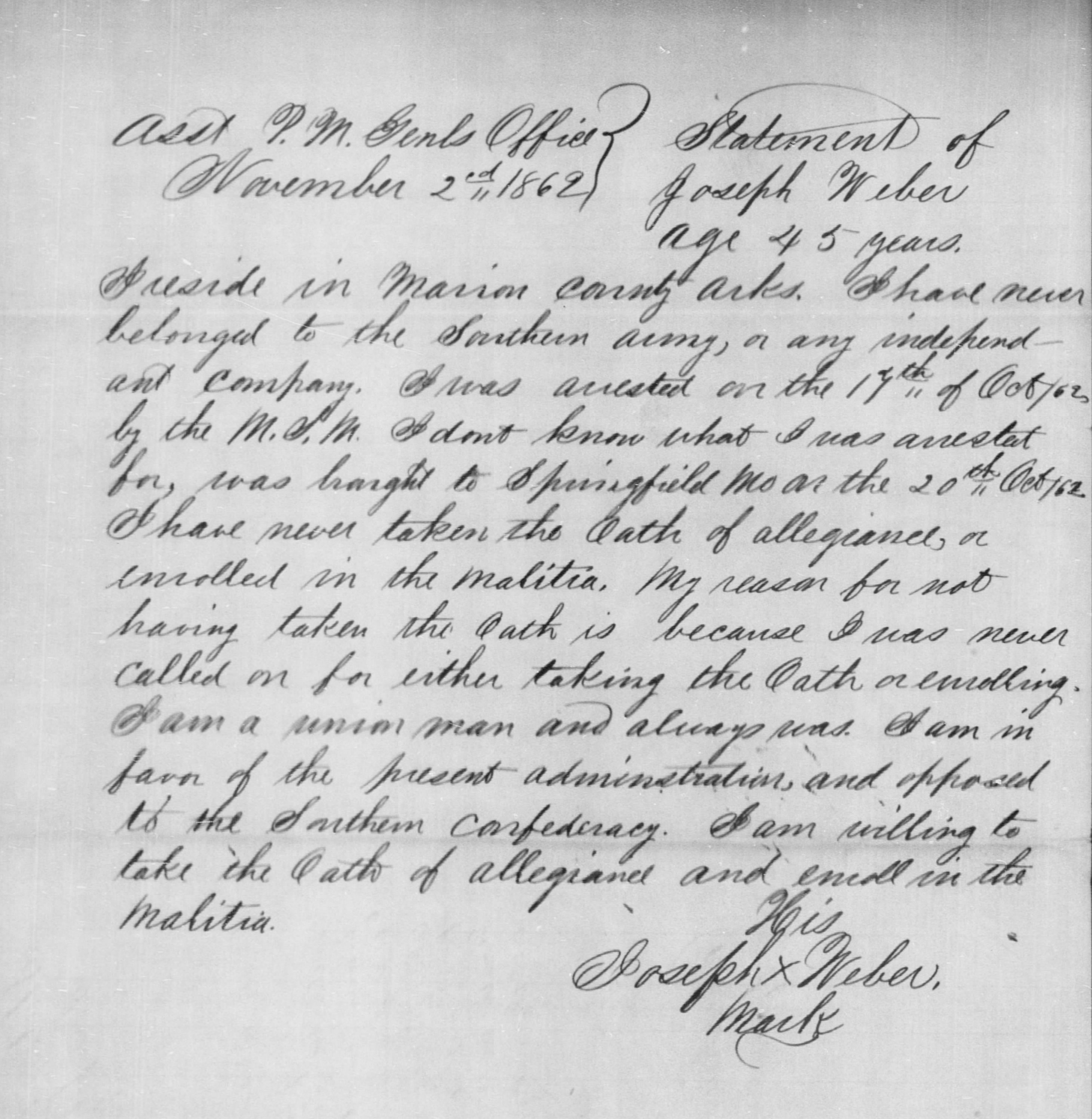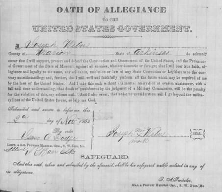 I, Joseph Weber County of Marion State of Arkinsas do solemnly