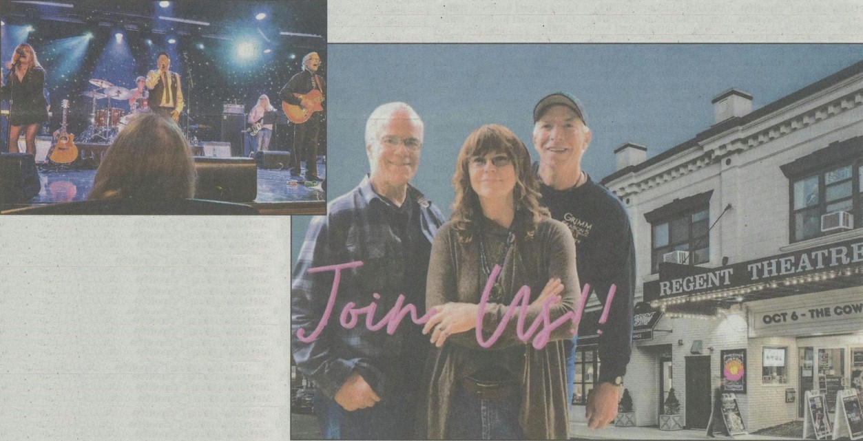 At the Regent, Bob, Paul and Susan - who continue to carry on the legacy of THE COWSILLS - will perform their hits including "THE RAIN, THE PARK AND OTHER THINGS (Flower Girl)," "HAIR (Theme from the musical ;Hair')," "INDIAN LAKE," "WE CAN FLY," and "LOVE AMERICAN STYLE," to name a few - backed by their longtime touring band.